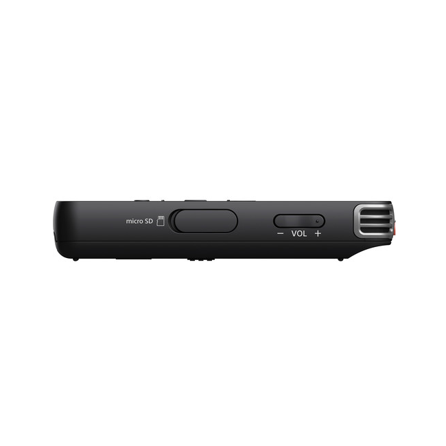 The ICD-PX470 comes with 4GB of built-in memory, which gives you a max recording time of 59 hours and 35 minutes when recording stereo MP3s at 128 kbps. However, you can expand memory capacity with a microSD card for up to 32GB of additional memory, equivalent to over 536 hours of recording time (MP3 at 128 kbps).
