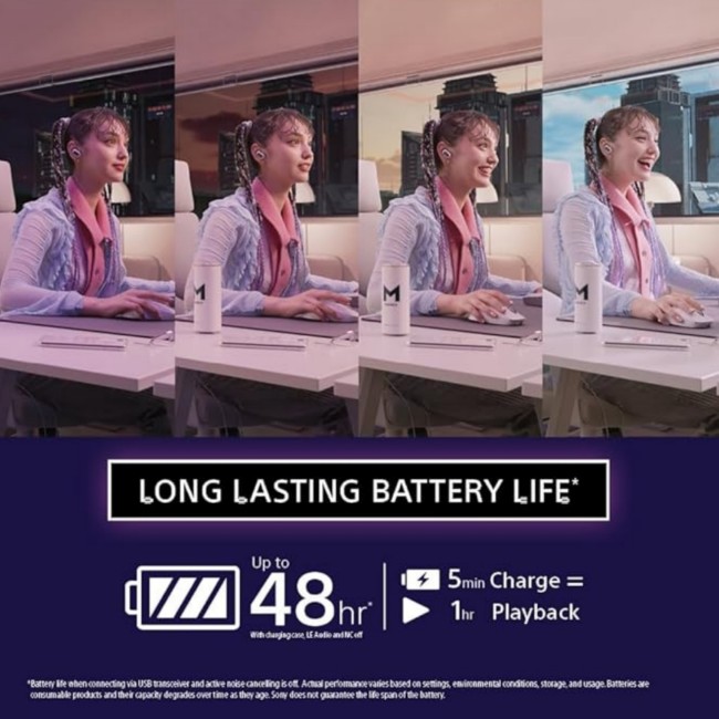 IMPRESSIVE BATTERY: Enjoy up to 12 hours of uninterrupted gaming and chat on a single charge, 48 hours of battery with the charging case through LE Audioโpower that keeps you going all day.