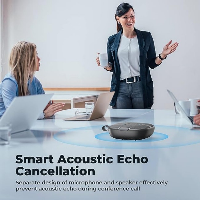 SoundPEATS PureVoice Bluetooth Speakerphone AI SMART NOISE CANCELLATION – Adopt the smart noise cancellation algorithm by SPEECH to suppress the unwanted noise around and capture the voice accurately in a meeting, steady noise as air conditioning and computer, instantaneous noise as keyboard, and human voice discussion.