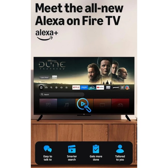 This Fire TV was designed for our smartest, most helpful AI assistant yet—ready with personalized recommendations, faster discovery, quick answers about what you’re watching, access to Amazon Photos, and even smart home management. Full access to Alexa+ on compatible devices such as this one is included for free with a Prime membership.