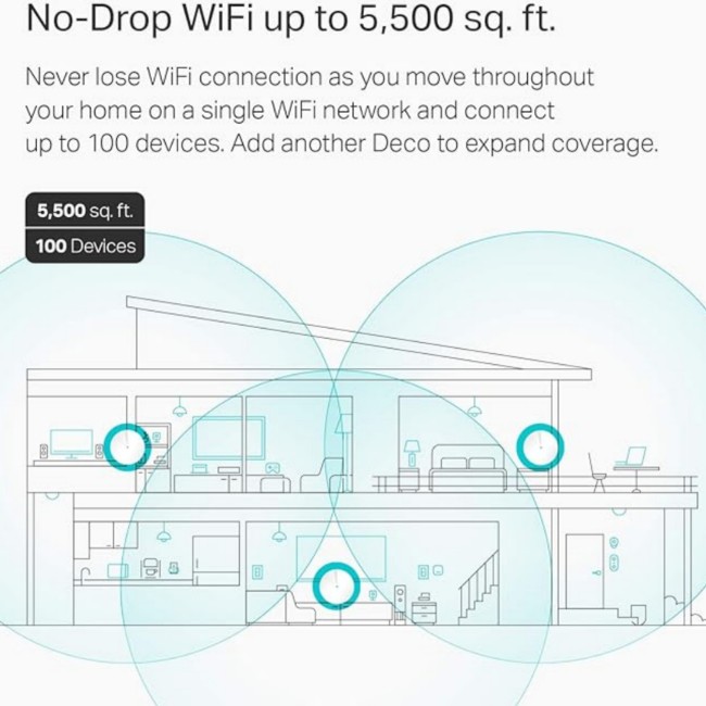 Better coverage than traditional Wi-Fi routers: Deco M5 uses 3 units working seamlessly to create a mesh network that can cover homes up to 5,500 square feet. No dead zone anymore