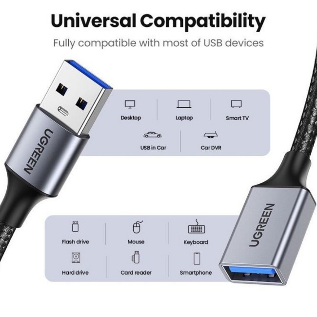 UGREEN 10497 USB 3.0 Extension Braided 2M Cable