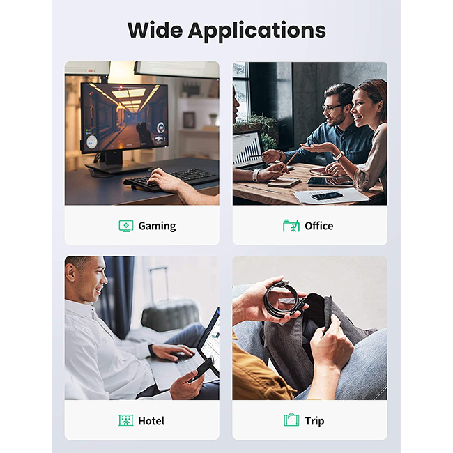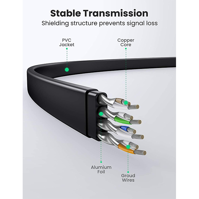 UGREEN Cat 8 ethernet cable is build-in 4 pairs of twisted-pair (U/FTP), aluminum shielding enhance anti-interference ability effectively. Ideal 40Gbps flat Ethernet cable to take advantage of the full speed network for Home office / School / Hotel / Internet cafe / Computer data center / Cloud server / Enterprise server, etc.