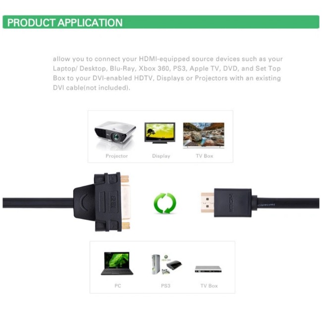 UGREEN 20136 HDMI Male to DVI Female Adapter 22CM Cable