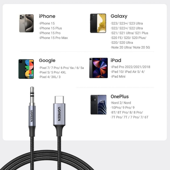 Plug and play: UGREEN USB C to AUX Cable can easily connect your Type C devices to car stereo, speakers, headphones or any device with 3.5mm audio jack or Aux-in port. No drivers or apps required, just easily plug and play. Let the music never stop.