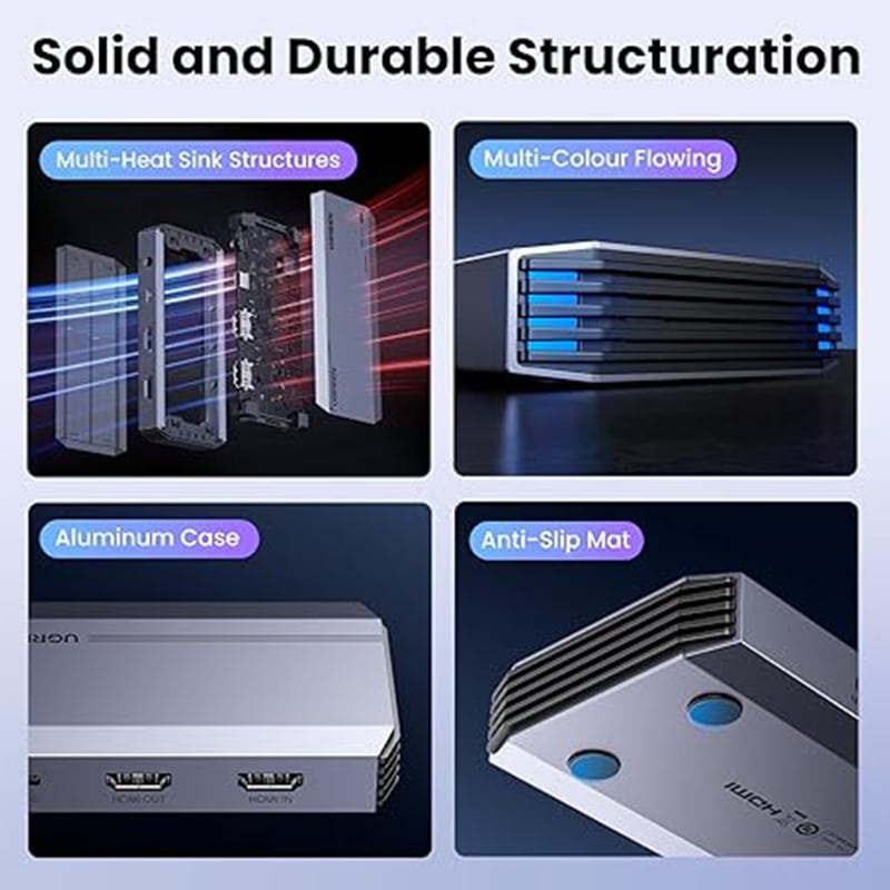 Ultra HD 4K@60Hz Capture: UGREEN capture card supports 4K@60Hz/2K@144Hz/2K@120Hz/1080P@240Hz capture and recording MJPEG video format, allowing you to stream and record videos with high quality. Perfect streaming solution for streamers, gamers, creators. Note: The USB 3.0 Type A or Type C output device is required for optimal performance and low delay