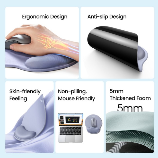 The UGREEN 25244 Ergonomic Mouse Pad with Wrist Rest is designed to provide superior comfort and wrist support during long hours of computer use. Featuring a soft gel-filled wrist cushion, it helps maintain a natural wrist position, reducing strain, fatigue, and discomfort caused by extended mouse usage.