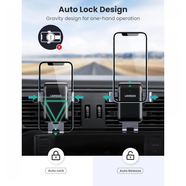 With the gravity auto lock design, this UGREEN Car Phone Cradle enables one-hand operation.