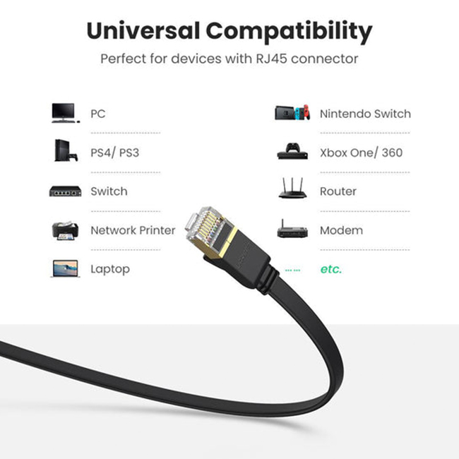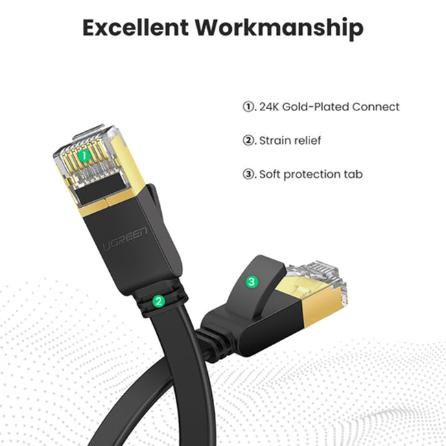 UGREEN Ethernet cable provides a fast and stable connection to the Internet. It is characterized by excellent parameters and high-quality manufacture. Gold plated connector contacts ensure the highest quality and durability of the product. UGREEN cable guarantees fast and trouble-free data transfer between your device and the Internet.