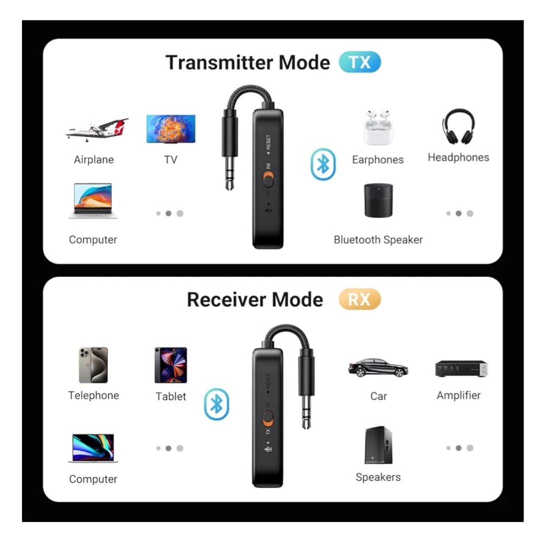 Vast Compatibility: UGREEN’s 2-in-1 Bluetooth Aux Adapter supports both transmit and receiver modes. Compatible with headphones, Airpods Pro/Max, TV, car, speaker, and more. Ideal for movies, workouts, and road trips