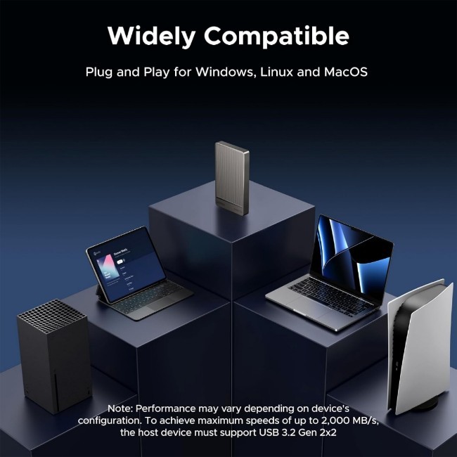 - Dual Cooling: This external hard drive has an aluminium case and built-in thermal, maintains stable speeds during extended use, with <45°C surface temps under heavy loads (25°C ambient).