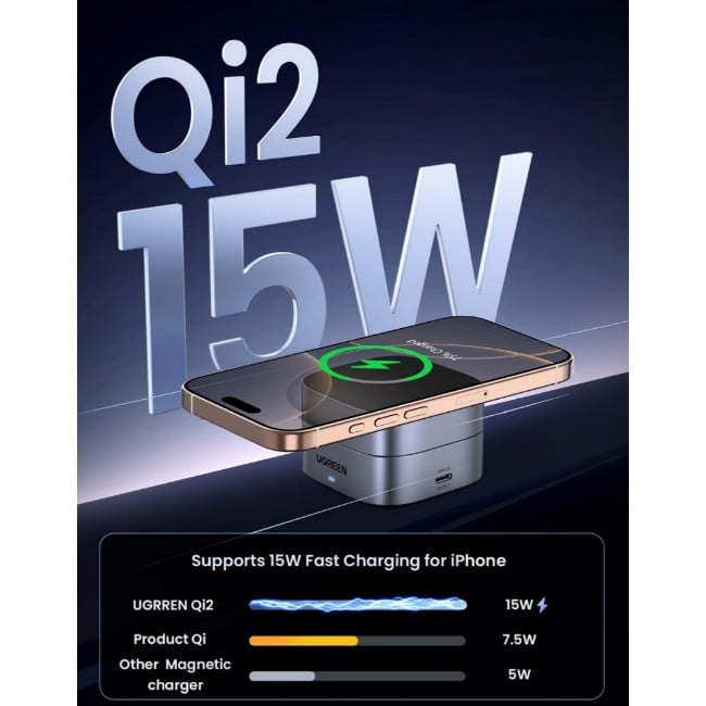 UGREEN 35316 MagFlow 2-in-1 15W Qi2 Wireless Charger
