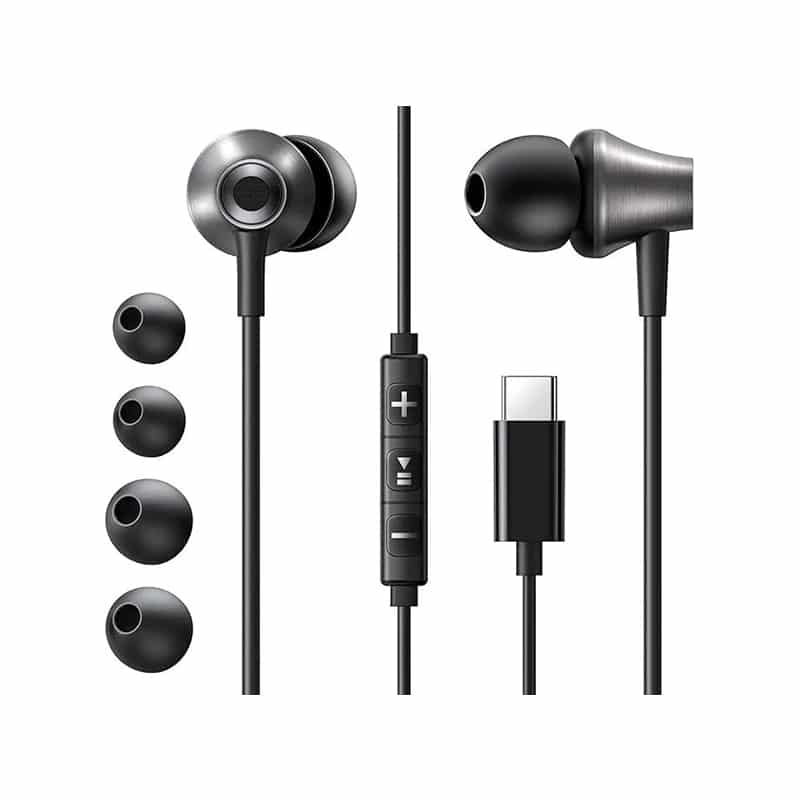 Simple Control Type-C wired earbuds are equipped with 3 buttons for multiple functions: play/pause/receive/end a call/next song/previous song. The USB-C headphones also activate the voice assistant by pressing the middle button.