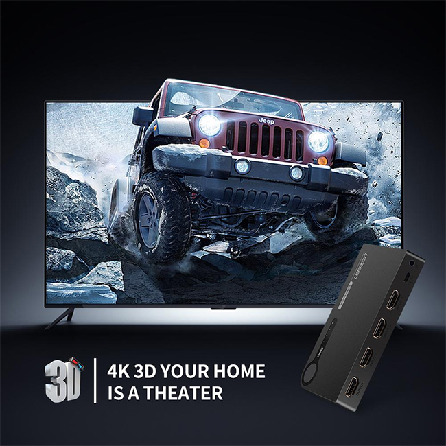 The HDMI switch box allows you to input 3 HDMI source device to 1 TV/Display/Monitor.It will automatically switch to the latest detected HDMI source seamlessly to save you trouble to switch your display to your latest HDMI device.
