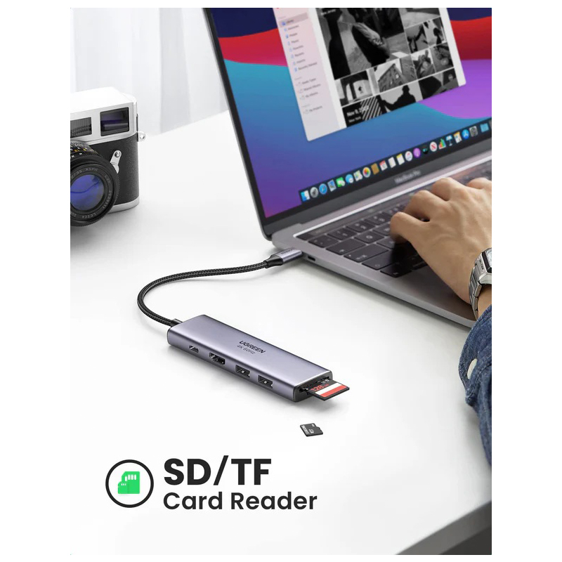 The Ugreen 6-in-1 USB-C hub is designed to be compact and lightweight, ideal for busy professionals on the go. It fits effortlessly into any bag or pocket, so you can carry it anywhere. Despite its small size, this device is packed with features that enhance your productivity because it allows you to connect multiple devices and expand your workspace easily.