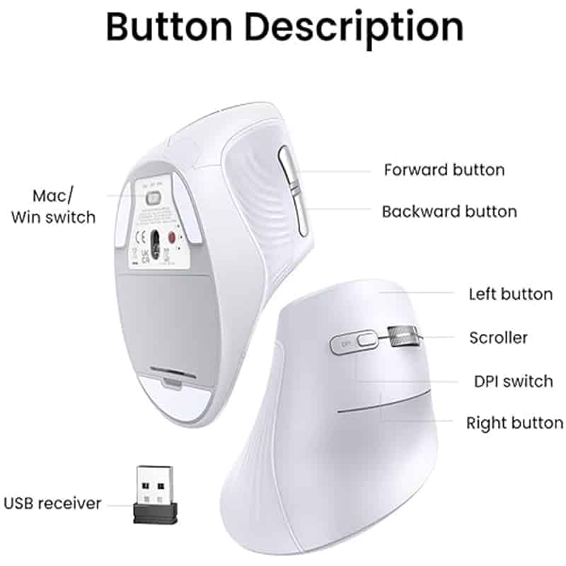Compatibility and Flexibility: UGREEN vertical mouse is designed with widespread compatibility in mind. It works seamlessly with both Mac and Windows systems, as well as various operating systems and devices. This flexibility ensures that our mouse can fit into any user’s workflow and personal preferences.