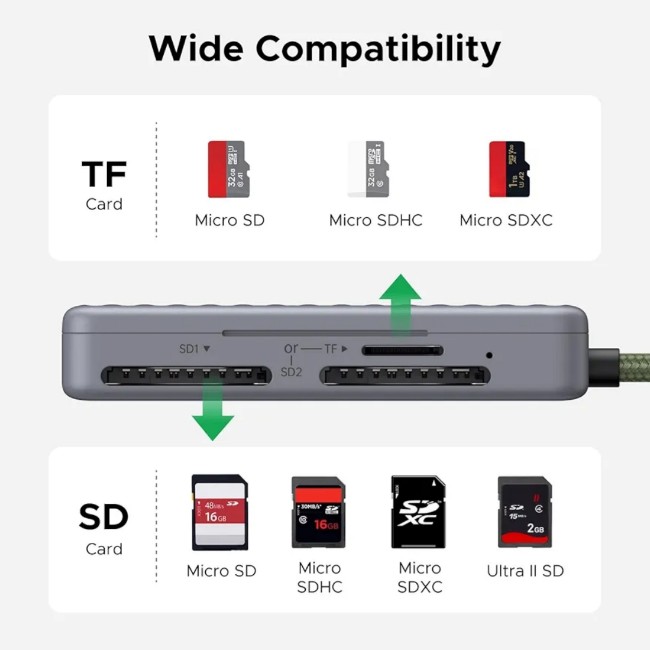 Achieve Blazing Fast 170MB/S Speed: Upgraded UGREEN USB C Card Reader, perfectly adapts to the mainstream high-speed SD/TF cards on the market – including SanDisk Ultra Pro (170MB/s), Lexmark Pro Series and more