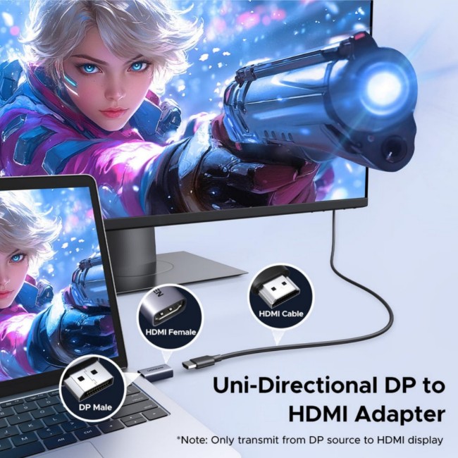 Advanced Material: UGREEN DP to HDMI Converter is made with aluminum alloy jacket which is rust resistant and can withstand 10,000+ times of plugging and unpluging. It can provide a longer lifespan with stable signal transmission