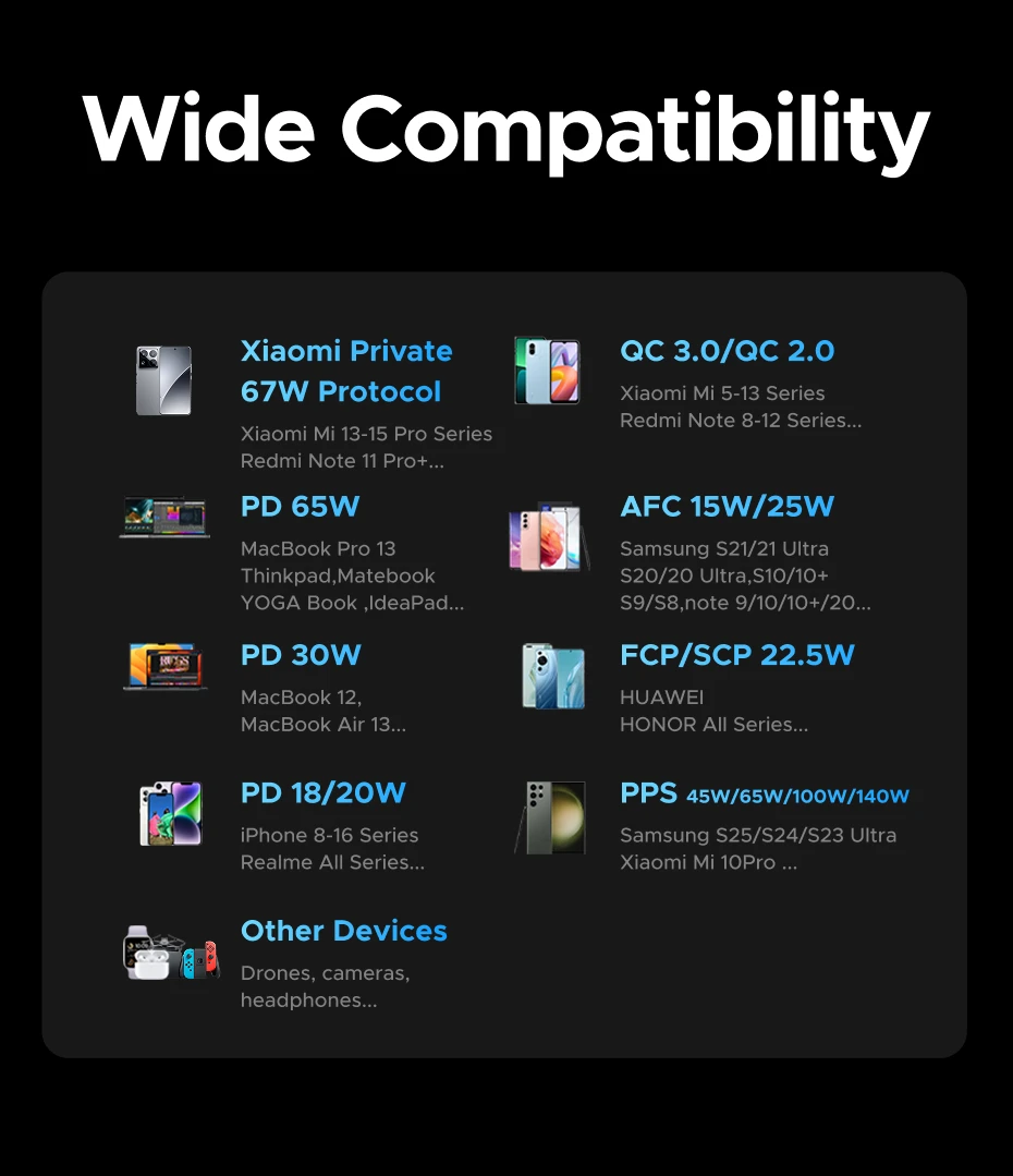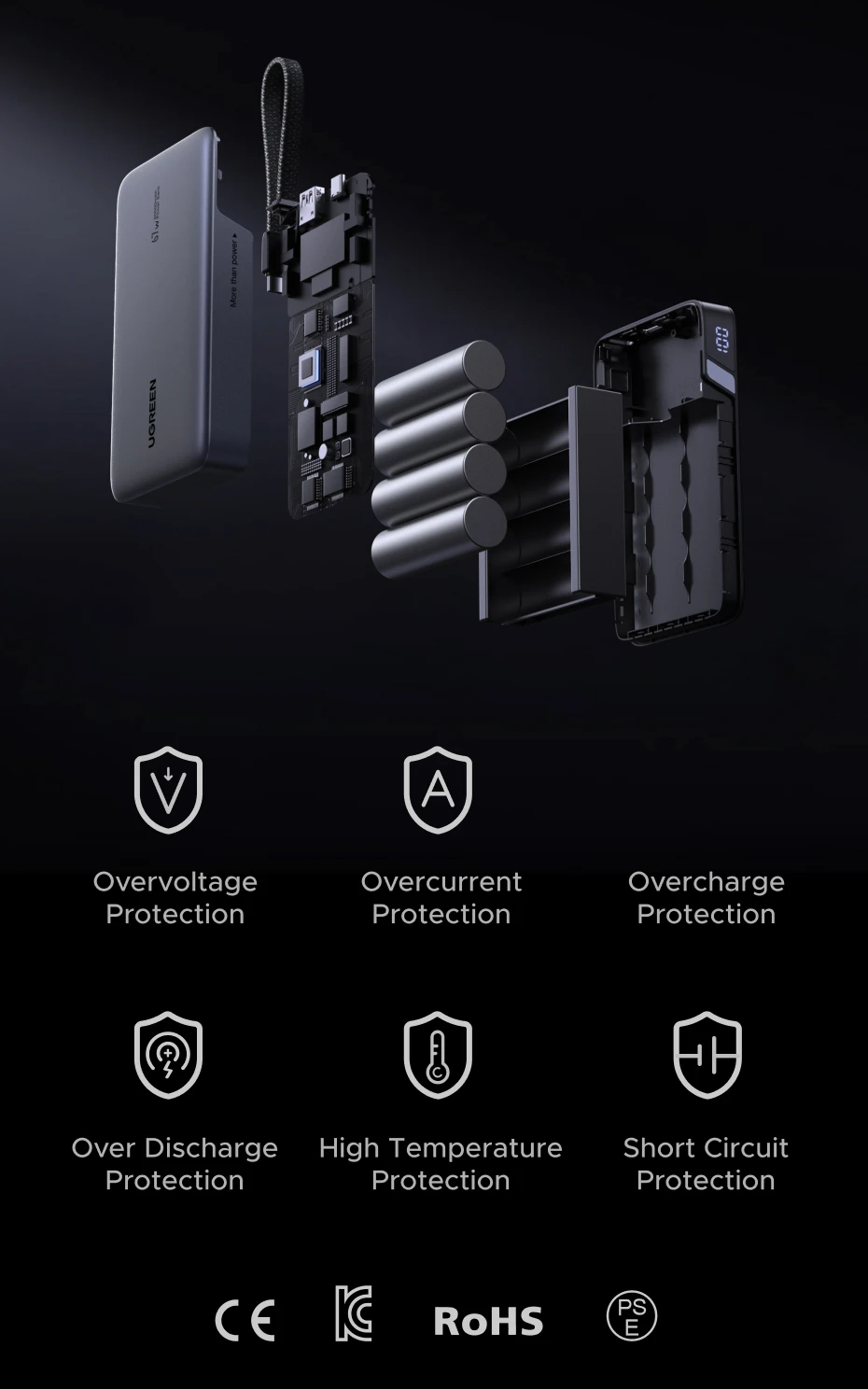 UGREEN 55996B 67W 20000mAh Power Bank With Built-in Cable