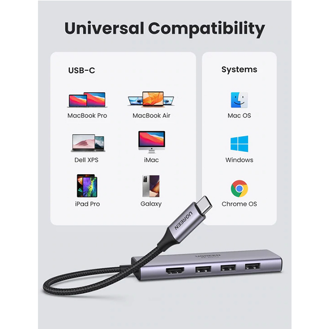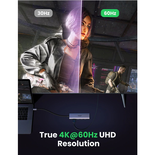 UGREEN HDMI hub adapter supports a variety of resolutions up to 4K@60Hz, 4K@30Hz and 1080p@60Hz, including 1080p, 1080i, 720p, and 480p.