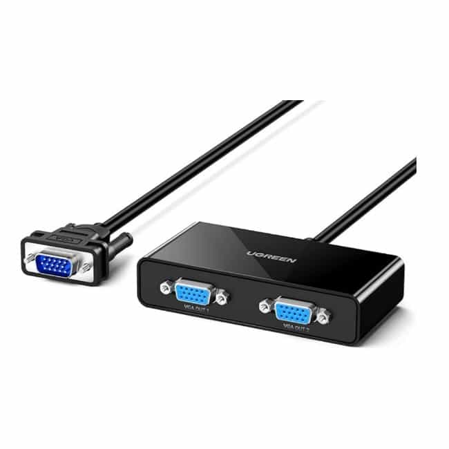 1 in 2 Out VGA Splitter: The VGA splitter box is designed to split and replicate what you have on one computer monitor to two external VGA monitors/projectors/displays/TVs simultaneously, delivering vivid pictures and enabling you to view on a larger screen. It is perfect for conference rooms, PPT representation in the classroom, training facility and multi-display broadcasting, Note*: Only support duplicate mode, NOT Extend Mode.