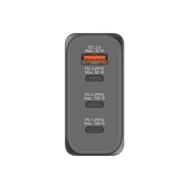 The travel charger is equipped with 3 Type C PD 3.0 ports and 1 USB-A QC 3.0 port.