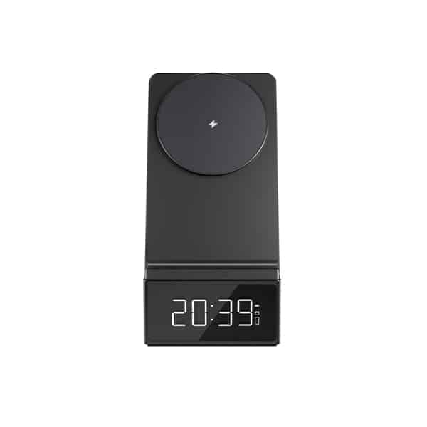 Three-in-One Charging Convenience This wireless charging station is your ultimate charging solution, allowing you to power up your mobile phone, headphones, and clock simultaneously. Say goodbye to cluttered charging cables and keep your essential devices ready to go.