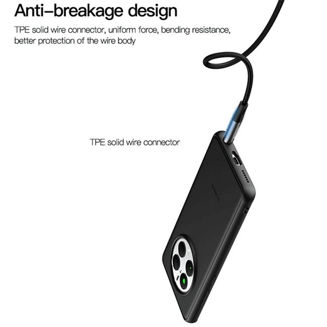 - Braided wire design, resistant to pulling
